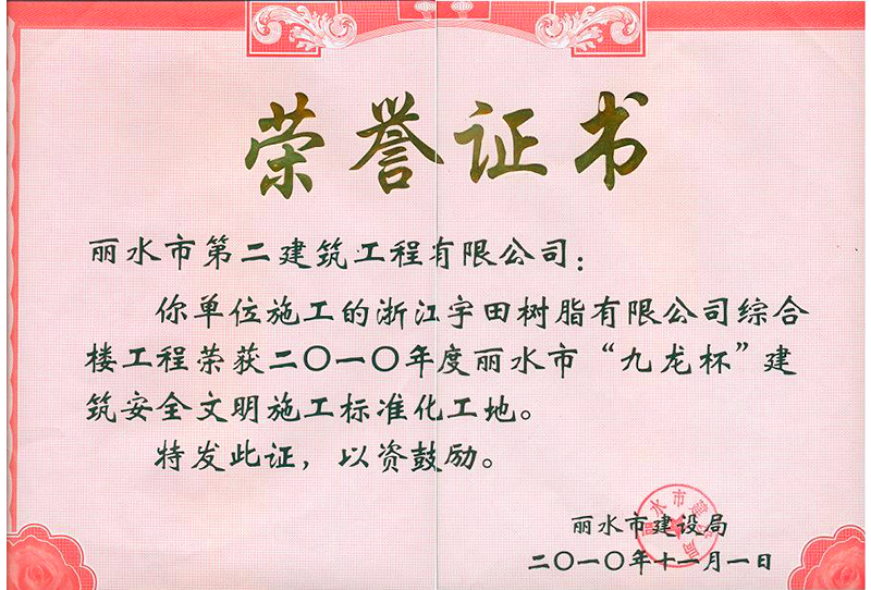 麗水市九龍杯建設(shè)安全文明施工標(biāo)準(zhǔn)化工地 2010-11-23 16:10:57 10 上一篇 : 開拓市場優(yōu)勝企業(yè) 下一篇 : 先進(jìn)基層黨組織